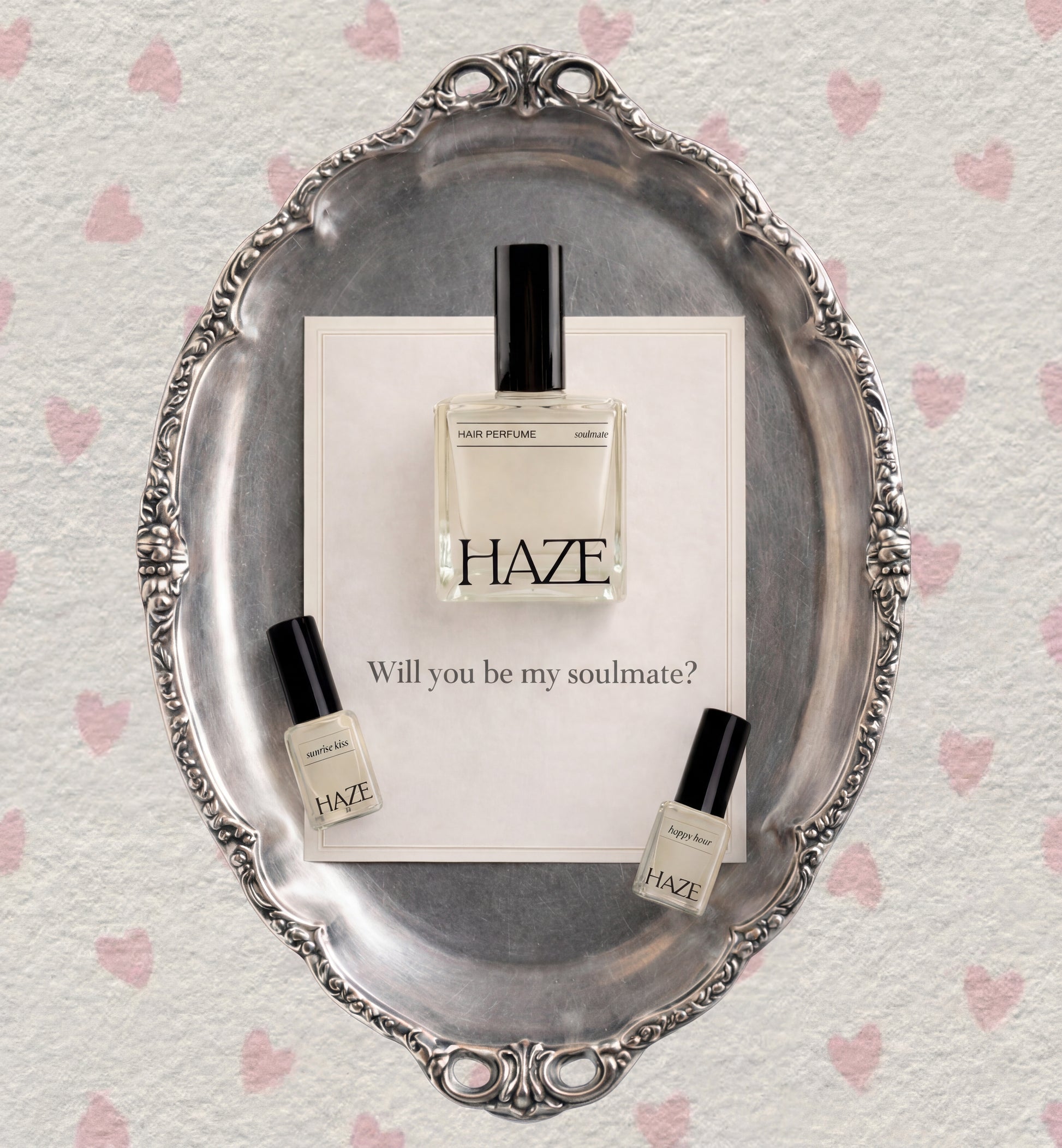 Spark romance this Valentine’s with our Limited Edition Hair Perfume Bundle: three captivating scents— soulmate (cedarwood mahogany), happy hour (citrus musk) and sunrise kiss (amber raspberry). Infuses hair with lasting fragrance and shine.
